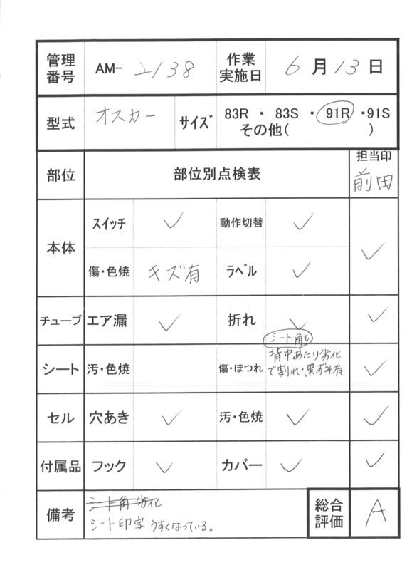 本体にキズ、シートの角・背部にワレ・黒ずみ、シート印字薄い