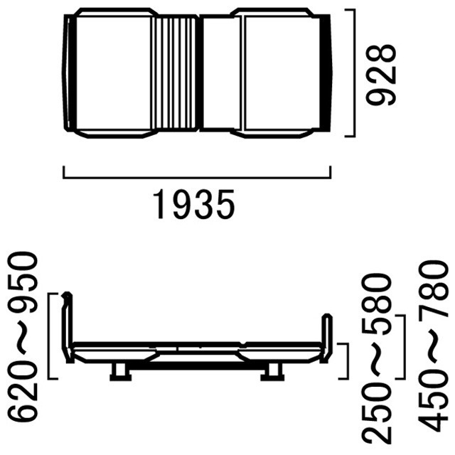 全幅:92.8 全長:193.5 ボトム高:25~58cm マットサイズ:83×180cm |