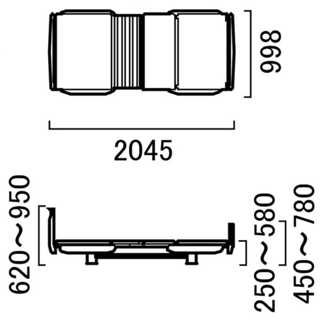 全幅:99.8 全長:204.5 ボトム高:25~58cm マットサイズ:91×191cm |