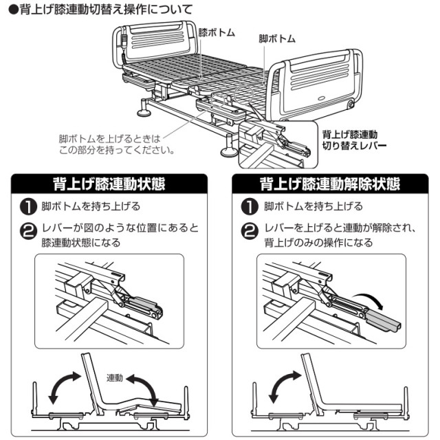 2モータータイプは、背+高さ/背・膝連動+高さが手元スイッチで自在にコントールできます。