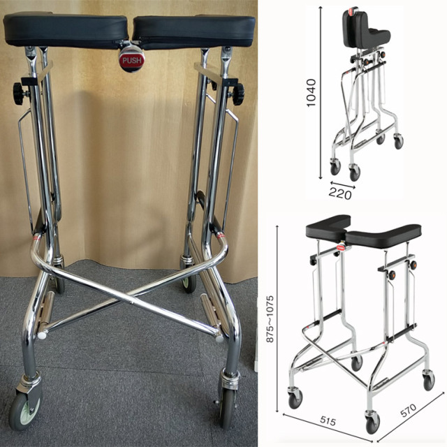 肘掛マットに上腕を置いて歩行ができる、キャスター付きの歩行車です。