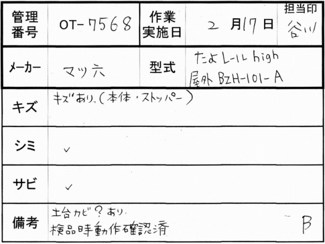 土台カビ、検品時動作確認済み、本体・ストッパーキズあり