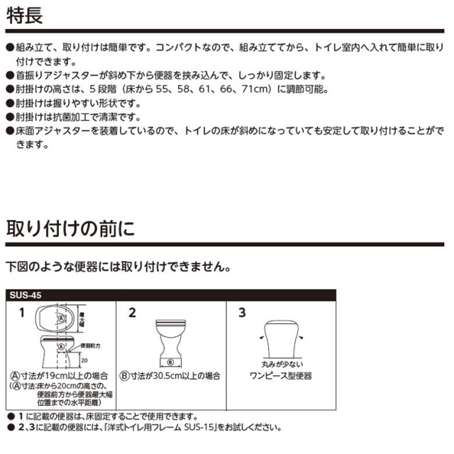 | 洋式トイレ用フレーム SUS-45 |