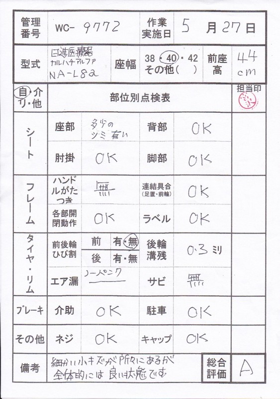 ノーパンクタイヤ、座部に多少シミ、細かな傷あり